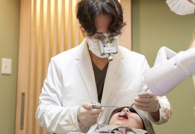 常に拡大鏡を使用し、より精密さが求められる場面では最大約20倍の視野を確保できるマイクロスコープを保険・自由診療問わず使用します。むし歯の取り残しを防ぎ、修復処置の適合性を高めるためにも、拡大視野は欠かせません。