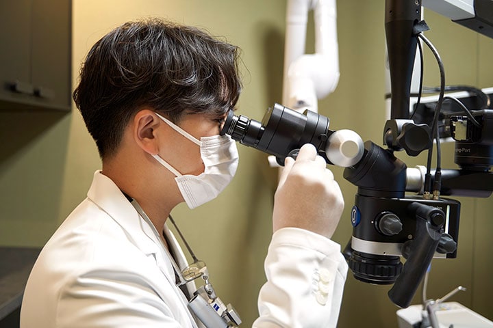 歯はわずか数ミリからマイクロ単位の構造しかない精密な『臓器』です。その大切な臓器の異変を肉眼で正確に確認するには限界があるため、当院ではすべての治療を拡大視野下で行います。