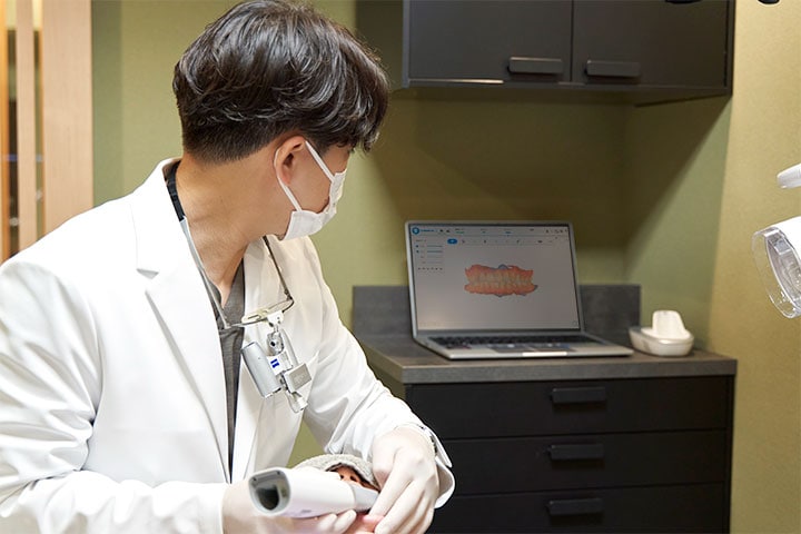 当院では、カメラ付きマイクロスコープ、小型CCDペンカメラ、口腔内スキャナー、口腔内カメラなど複数のツールを駆使し、治療前・治療中・治療後の状態を記録。患者様に丁寧にご説明し、共有することで、安心と納得のある治療を行います。