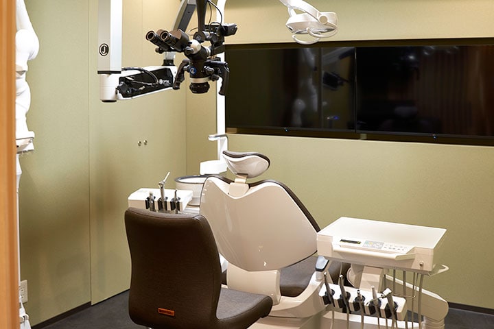 当院では、最大約20倍に拡大できるマイクロスコープ(歯科用顕微鏡)を用いて、保険診療・自費診療を問わず、すべての根管治療に精密さを追求しています。根管内の微細な構造や破折、感染部位を正確に捉えることで、治療の確実性を高め、再発リスクを最小限に抑えることが可能です。